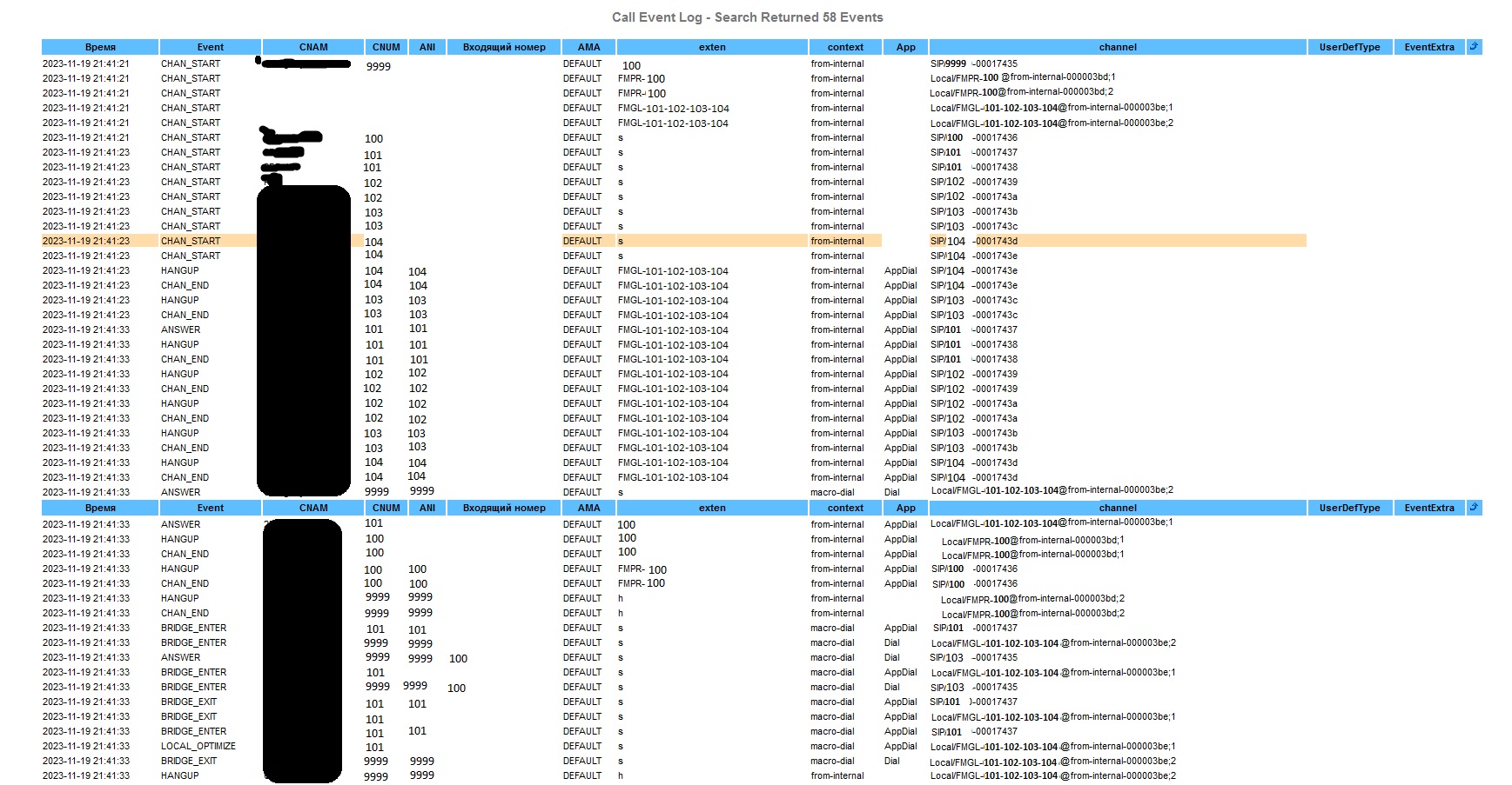 Суть: создал follow me на номер 100, добавил в групу 100, 101, 102, 103, 104. Стратегия дозвона - ringallv2, начальное время звонка - 0. Когда вызов поступает: на номере 100 - один входящий на телефоне. На всех других номерах - 2 входящих на телефоне (на первой линии 1, на второй линии 1), при чём все с номера 100. Кусок отчёта на фото. Если номер без follow me, то всё нормально и на телефоне, и в cdr. Меня смущает создание по два канала на один номер (смотреть фото). Но я не знаю куда копать дальше, прошу помощи.