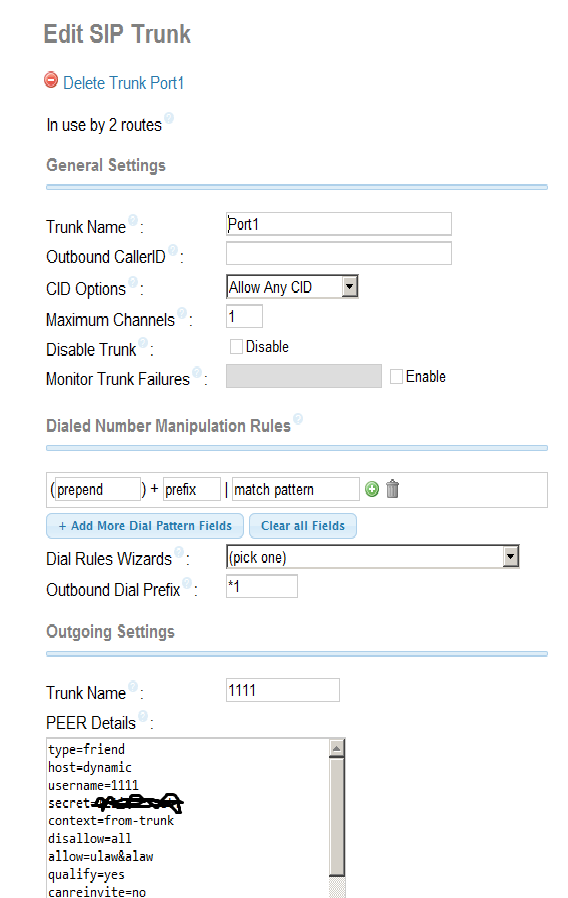 Так образом настройки транка в FreePBX для канала с симкой 1111111111 приобретают следующий вид: