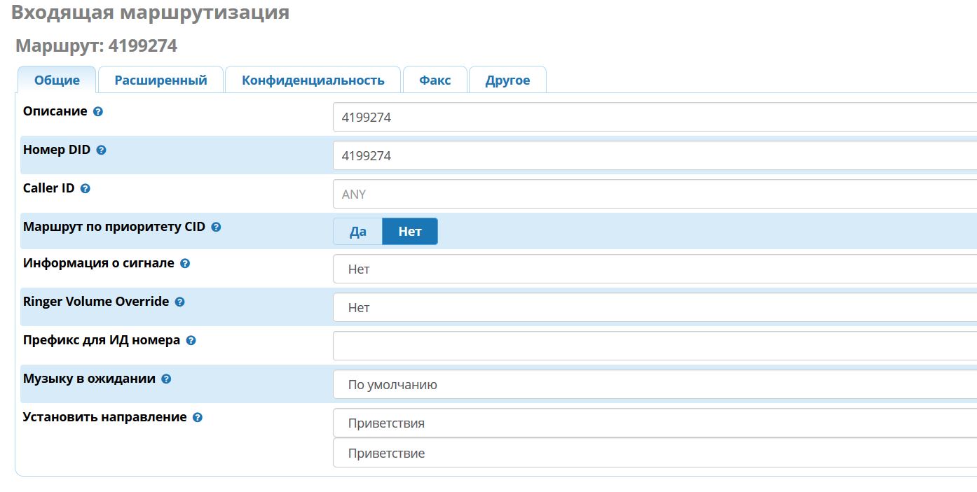 Должен быть забит входящий маршрут по DID = 4199274, и указано назначение - Приветствие. Это есть?