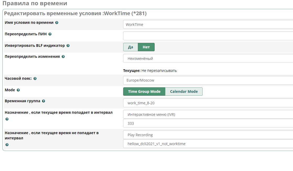 Хочу открыть тему. Создал еще одно правило по времени для SIP номера 356.