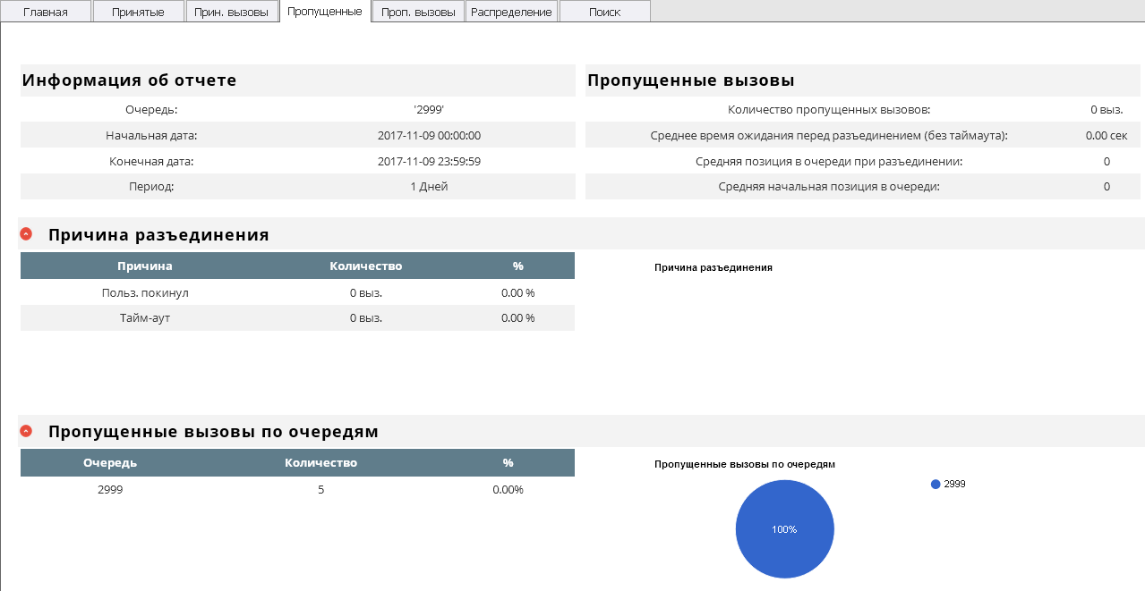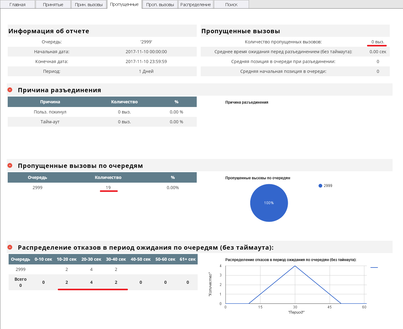 В закладке "Распределение" есть информация о том, что пропущенные вызовы имеются