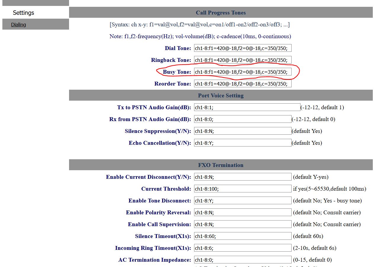 PSTN - шлюз - SIP - Приветствие - Группа вызова (серийное искание). Собственно суть в том что если вызываеющий абонент (внешний) положит трубку после того как послушает приветствие то звонок не закончится никогда. Он дойдет до конца цепочки. В логах видно что шлюз не отправляет BYE после того как вызывающий положил трубку. За отбой отвечает параметр Busy tone. С этим параметром что я только не делал, и автонастройки запукал которые есть у шлюза и анализировал аудио что б вручную точные параметры написать. Все пофиг шлюзу. Может кто сталкивался? как это победить. Я и на российких форумах и на американский натыкался на посты что людям удавалось как то это решить, но решение невнятное. Типа того что б во всех 4 параметрах частота была одинаковой. Но у меня не получается.