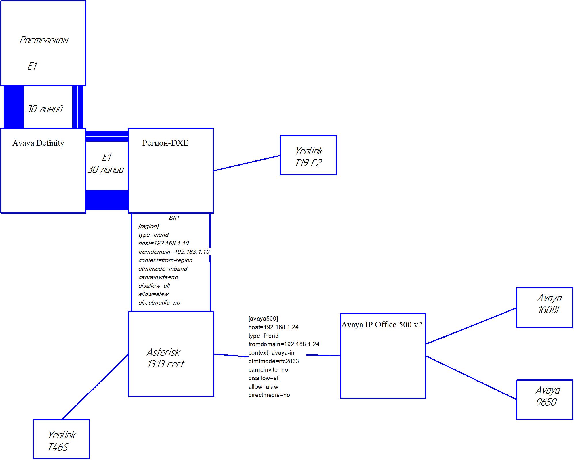 Имеется проблема на связке 3х АТС (смотри прикрепленную картинку "Баг голоса"), Регион - Asterisk - Avaya IP Office, при звонке с региона через Asterisk на "дорогие" аппараты (9650) Avaya появляется "дергание, пропадание букв" голоса. Причем только в одну сторону, от Региона в Avaya, голос абонента Авайи слышен хорошо, голос абонента региона - рваный.