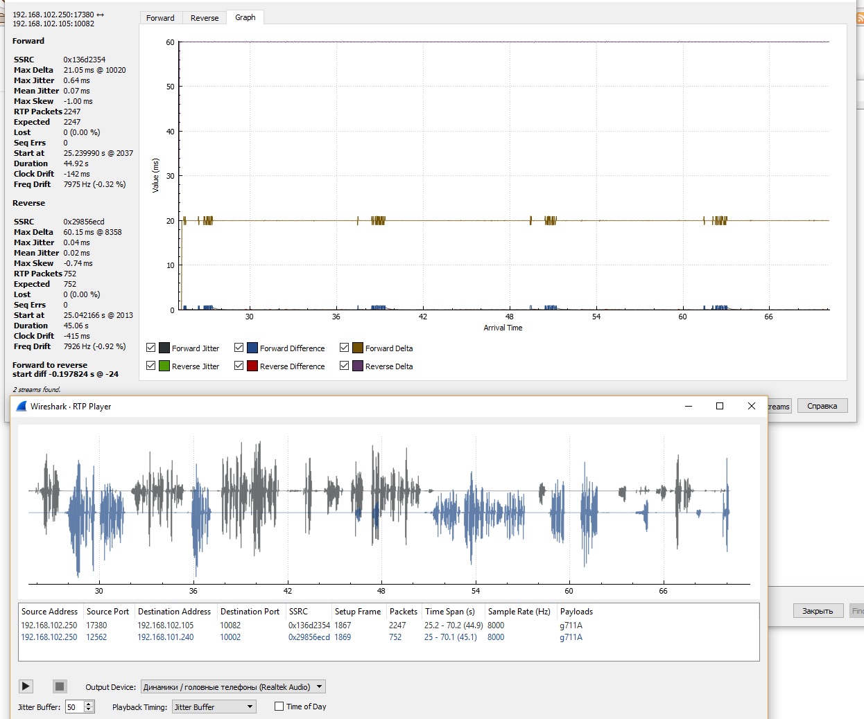 Сделал дамп звонков на астериске, различие нашел лишь в смещении/задержке голоса (см вложения). При прослушивании дампа слышно эхо...