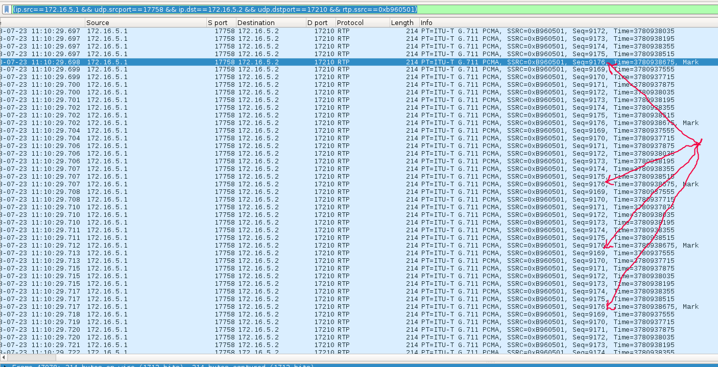 Нет, у меня нет такого, Seq строго по порядку двумя счетчиками (в одну и в другую сторону).Vlad1983 писал(а):помимо всего прочего такое может быть из-за задваивания/затраивания/etc RTP