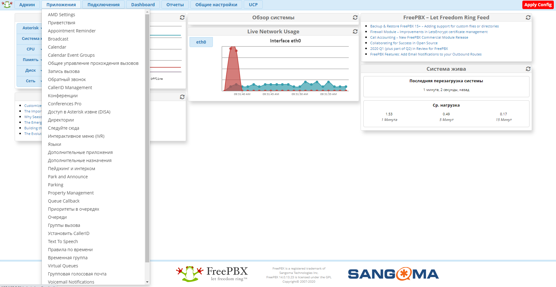 Имеется FreePBX14 c недавнего времени при входе в интерфейс управления под админской учеткой обнаружился урезанный интерфейс.