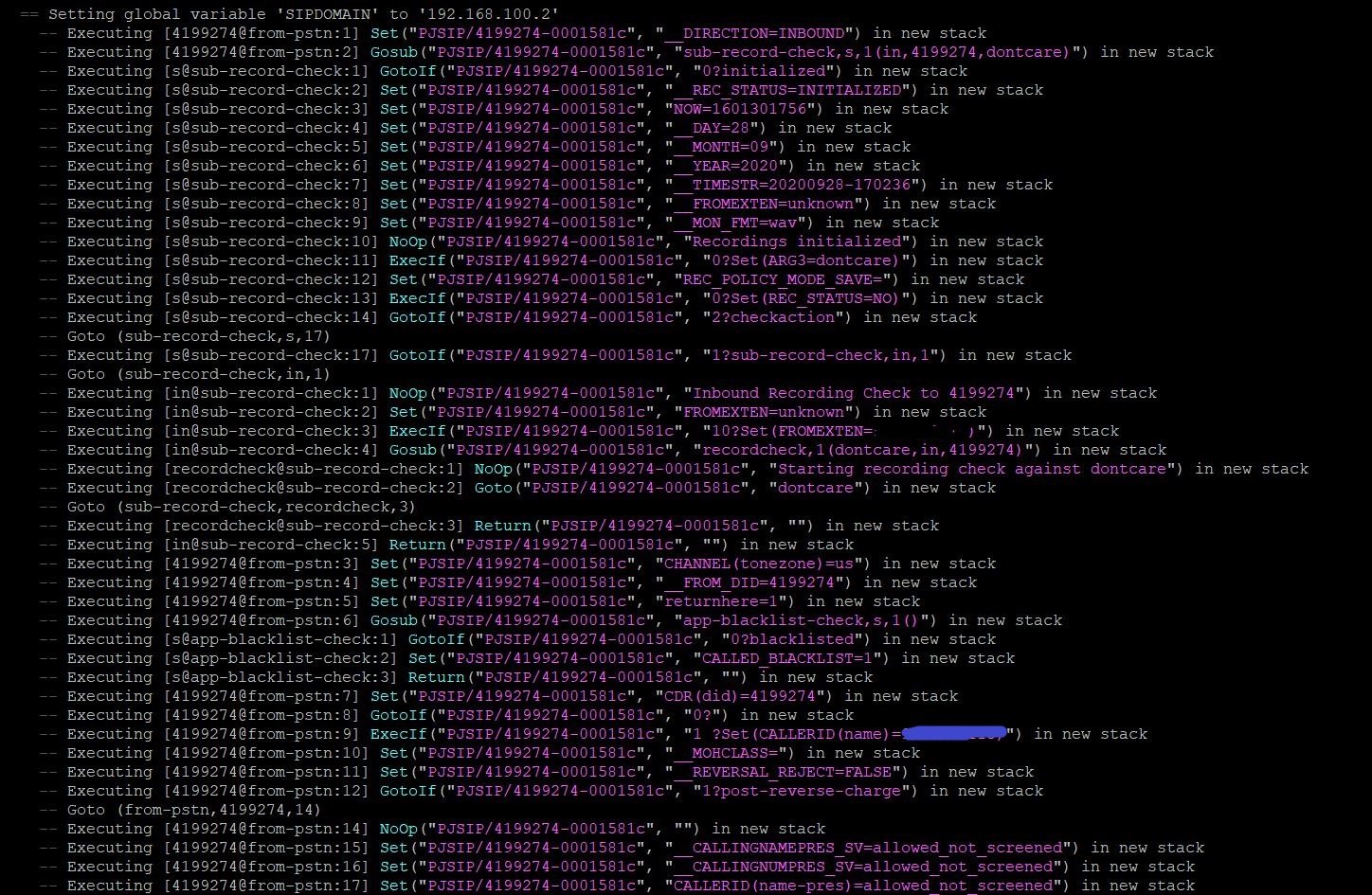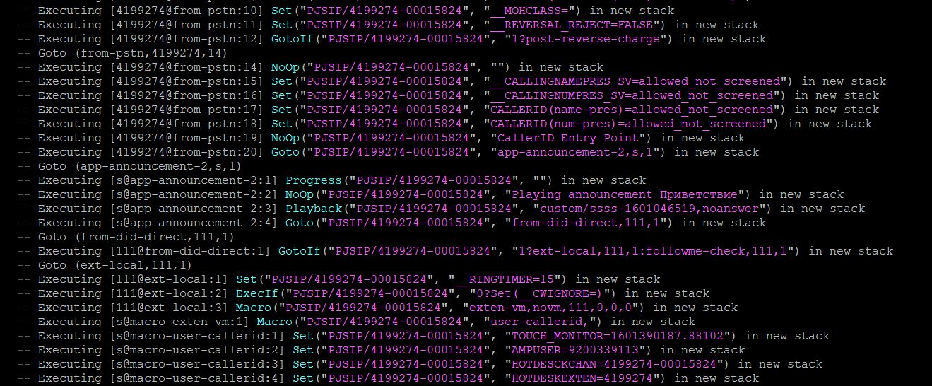 Видно что выполняется приветствие - файл custom/ssss-1601046519 c опцией noanswer. А зачем там follow-me сработано?