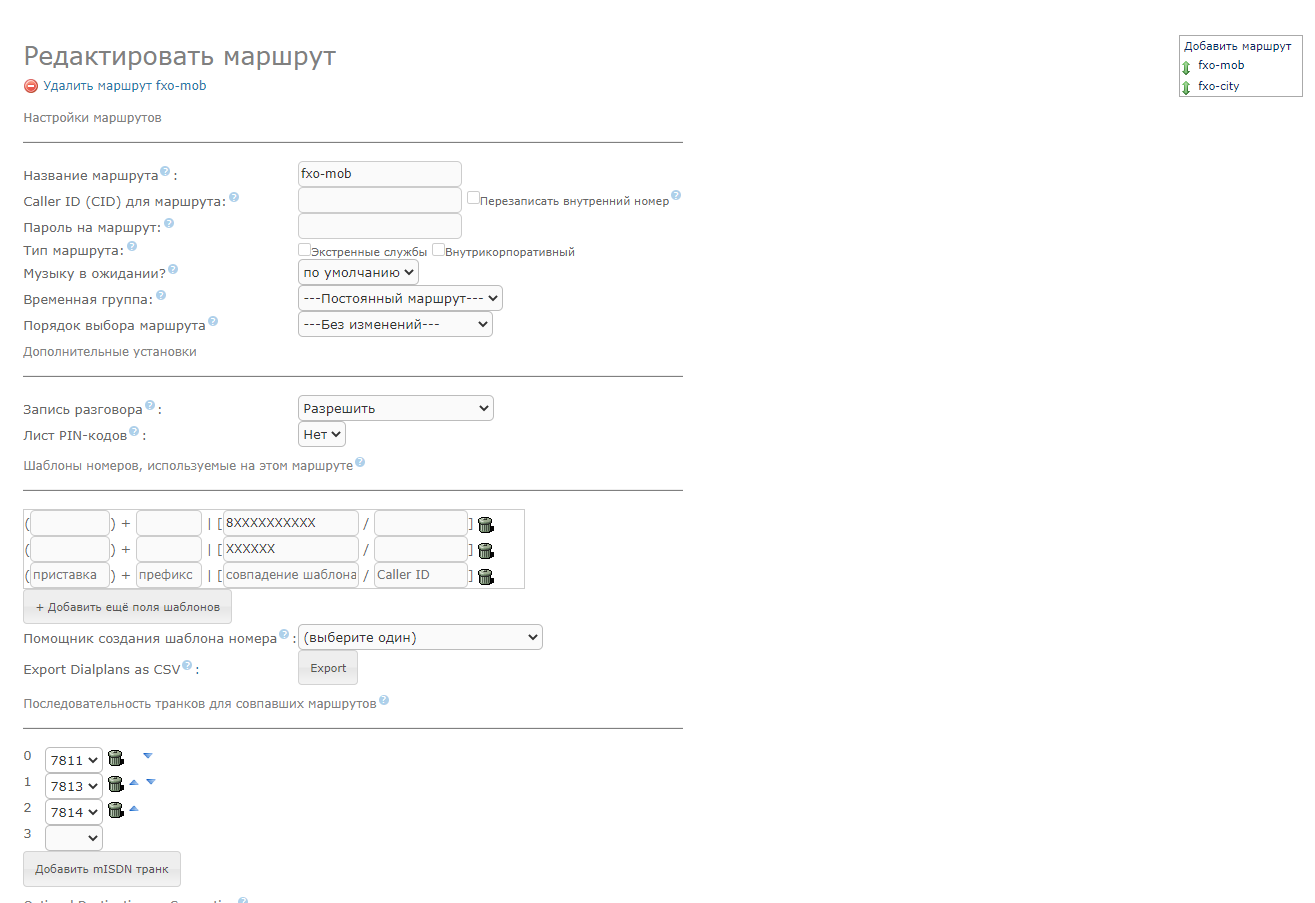 Но маршрут вы задали в этот транк шестизначные