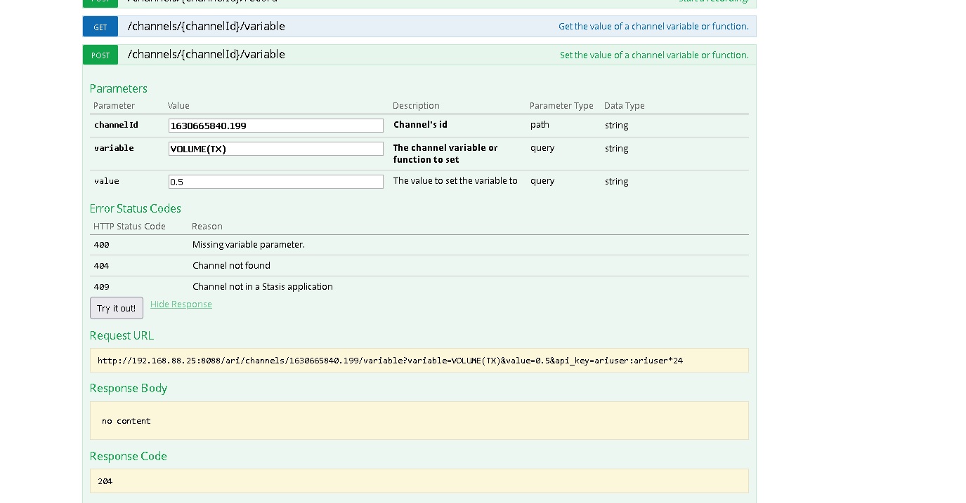2) POST /channels/{channelId}/variable Set the value of a channel variable or function
