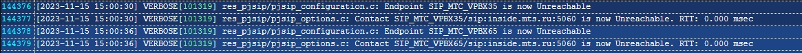 126162 [2023-11-15 03:40:41] WARNING[117203] res_pjsip_outbound_registration.c: No response received from 'sip:inside.mts.ru:5060' on registration attempt to 'sip:sip_******I@inside.mts.ru:5060', retrying in '60'