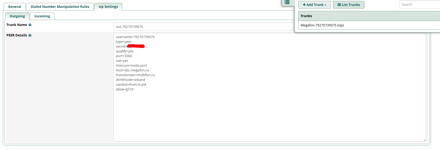Развернул на proxmox Freepbx16. Взял один из транков мегафона со старого freppbx11(соответственно тут его отключил)