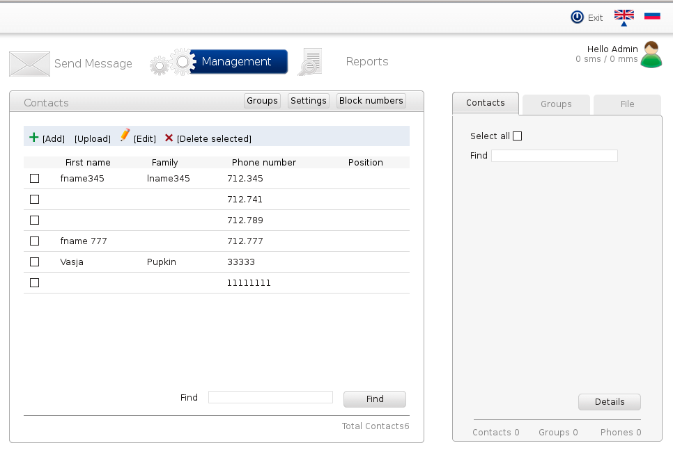 Фишка в том, что заводятся юзеры, которые и принимают, и отправляют, используя свою адресную книгу, и отправлять могут даже массово! В известном смысле, конечно, зависит от коннектора. В который можно подключать как ГСМ шлюзы, так и провайдеров СМС.