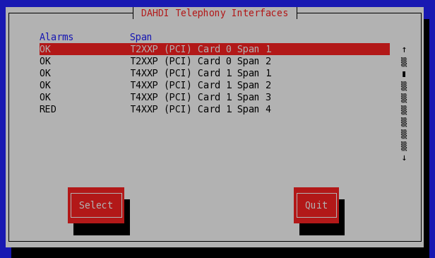 T2XXP (PCI) Card 0 Span 1 OK 0 0 0 CCS HDB3 CRC4 0 db (CSU)/0-133 feet (DSX-1)