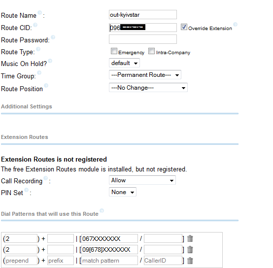 Не получается настроить исходящие вызова через транк на Dinstar dwg2000e по средством PBX. В наличии имеется 3 сим карты МТС, Киевстар и Лайф. При до звоне с сим карт вызов все ровно идет через городской номер.